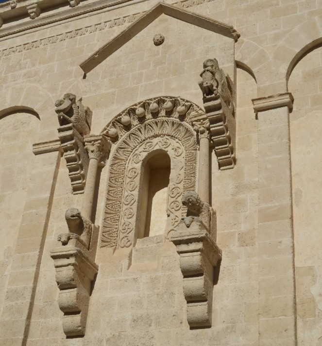 Collocazione: Matera, Chiesa di San Giovanni Battista (già Chiesa di Santa Maria la Nova), esterno, abside, mensoloni ai lati della finestra