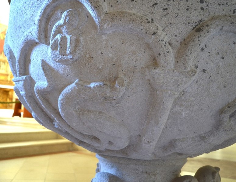 Collocazione: Matera, Chiesa dei Santi Pietro e Paolo (detta di San Pietro Caveoso), interno, navata laterale sinistra, quarta cappella, fonte battesimale
