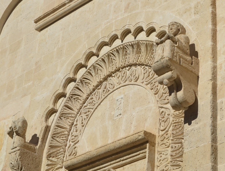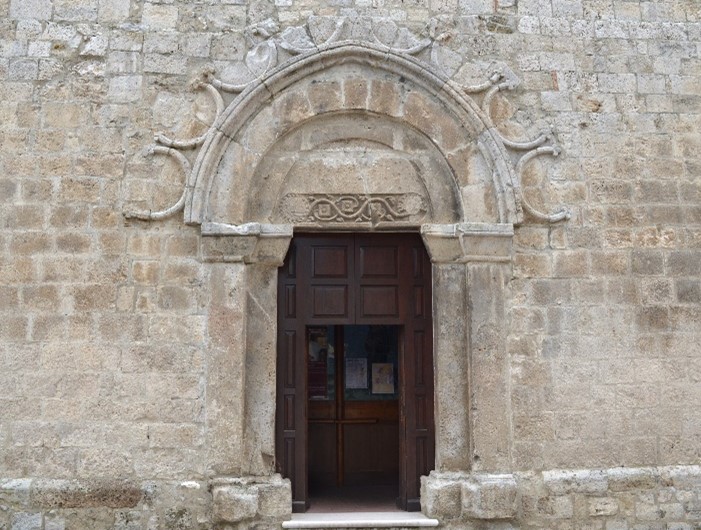 nel portale di questa chiesa si adattano nuovi modelli di origine anglo-normanna a schemi iconografici e tecniche esecutive appartenenti al precedente sostrato culturale di influenza bizantina, particolarmente presente sul territorio lucano. Si veda, per esempio, lâornamentazione a rilievi zoomorfi (ovvero, di forma animale), fitomorfi (ovvero, di forma vegetale) e a testine del profilo dellâarco e il motivo geometrico a tarsie lapidee della lunetta