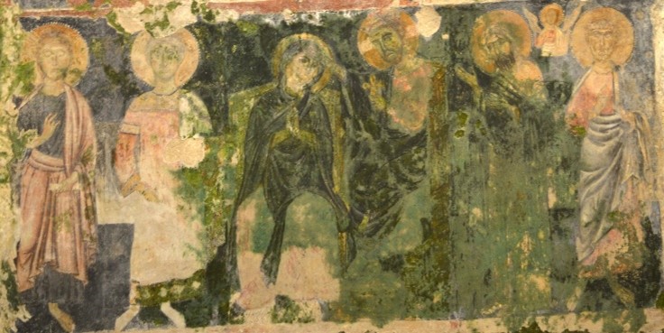 la scena di Incoronazione di Maria Vergine tra santi costituisce senzâaltro una novitĂ nel panorama artistico delle chiese rupestri materane sia dal punto di vista iconografico che stilistico. Il tema, infatti, risulta decisamente gotico e di provenienza ânordicaâ ed è reso con un linguaggio innovativo. Si veda, per esempio, lâintenso patetismo, le inedite ricerche prospettiche nel trono del Cristo, la particolare morbidezza dei panneggi e il superamento della qualitĂ grafica del passato. Tuttavia, lâopera conserva ancora numerosi elementi che la legano alla tradizione e a un impianto assolutamente bizantineggiante. Infatti, in presenza di due dei protagonisti (Cristo e la Vergine) del tema, assai diffuso nelle chiese rupestri locali, della Deesis (ovvero della supplica), lâautore inserisce anche il terzo interprete di questo schema iconografico (San Giovanni Battista) e proprio nel consueto gesto della richiesta dâintercessione. In tal senso, lâaffresco, pur relativo al tema dellâIncoronazione della Vergine, finisce per rappresentare una sorta di Deesis allargata a piĂš personaggi