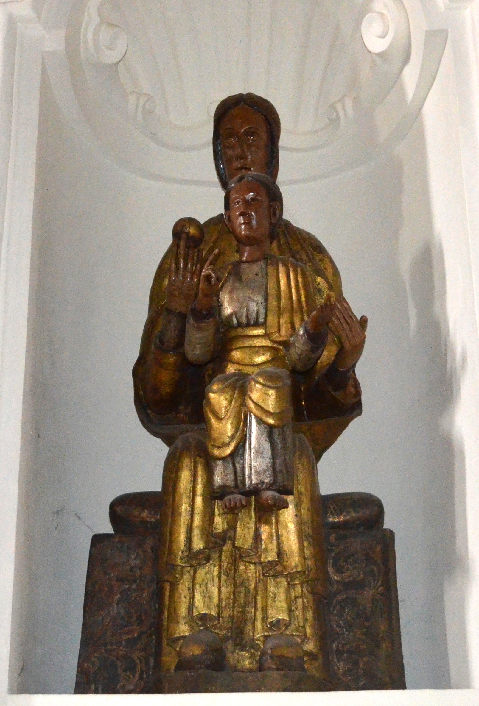 questa statua lignea, sebbene presenti una certa volumetria dei corpi che rivela una chiara attenzione per i nuovi aspetti plastici e naturalistici, dimostra ancora evidenti analogie stilistico-formali con la tradizione romanica e classicheggiante. Si veda, per esempio, come le figure della Madonna e del Bambino risultino rigidamente frontali e bloccate nei movimenti (le braccia sono aderenti al corpo fino ai gomiti) alla stregua di quelle della tradizione bizantina e come lâintaglio delle pieghe delle vesti sia lineare e quasi metallico, tanto è schiacciato e appena inciso