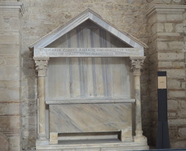 il monumento sepolcrale di Alberada di Buonalbergo (prima moglie del Conte di Puglia Roberto il Guiscardo, ripudiata nel 1058) posto allâinterno della cosiddetta Chiesa Vecchia dellâAbbazia è un esempio di tomba addossata a parete composta da una semplice edicola con timpano triangolare sorretto da due colonnine con capitelli corinzi e da sarcofago di etĂ antica appositamente reimpiegato. Tali forme, tuttavia, non sarebbero state quelle originarie ma il frutto di una risistemazione monumentale che sarebbe avvenuta nella seconda metĂ del XII secolo su ispirazione dei monumenti sepolcrali dei re normanni di Sicilia che, inizialmente, erano stati allestiti allâinterno della Cattedrale di CefalĂš (e che, successivamente, saranno spostati in quella di Palermo)