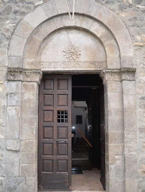 il portale della chiesa, nei capitelli degli stipiti decorati a foglie dâacanto e nella corolla di fiore e nel fregio vegetale che decorano la lunetta (rispettivamente al centro e alla base), richiama il linguaggio figurativo tipico del Romanico pugliese. Si noti la forte stilizzazione delle forme e il grafico e geometrico impianto degli elementi vegetali dellâornamentazione
